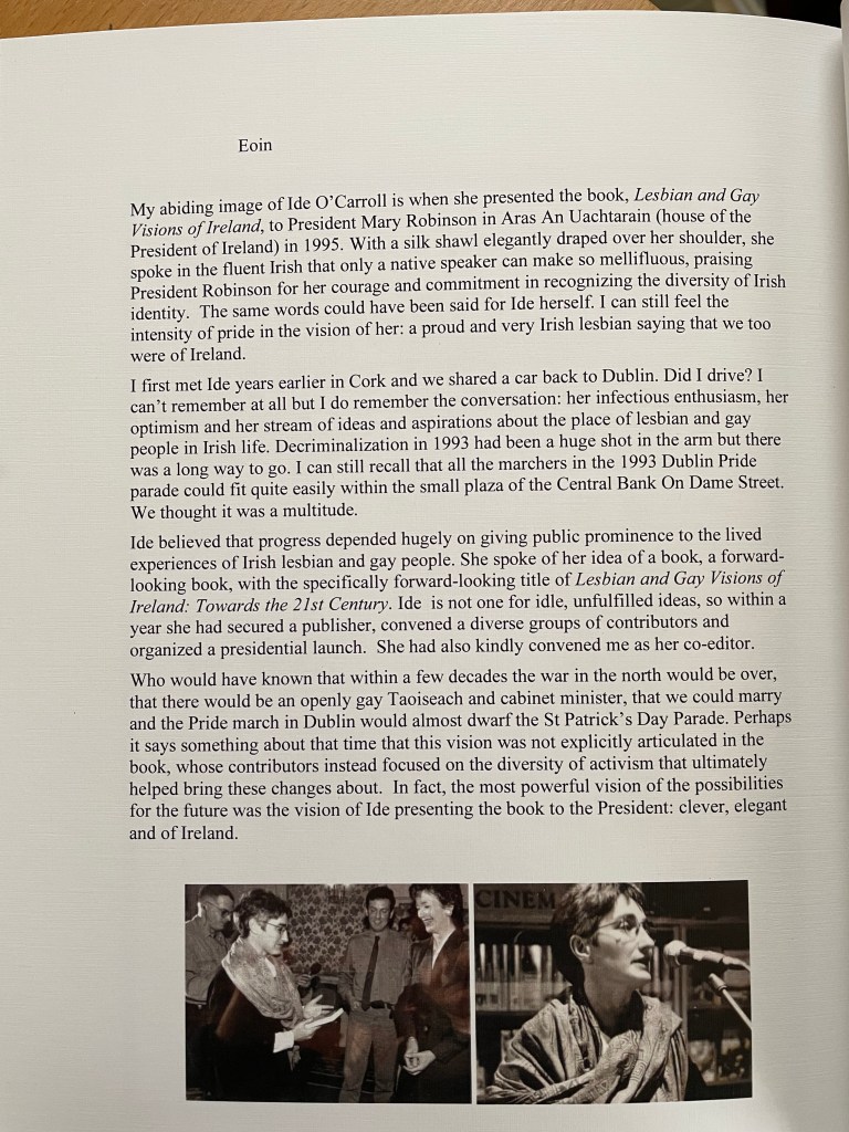 In 2018, Eoin wrote a moving tribute to his good friend (and co-author of this book) Ide O’Carroll to mark her birthday – see below.